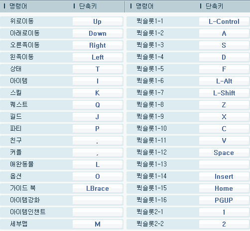 | 이벤트 | F6 | 퀘스트 | Q |