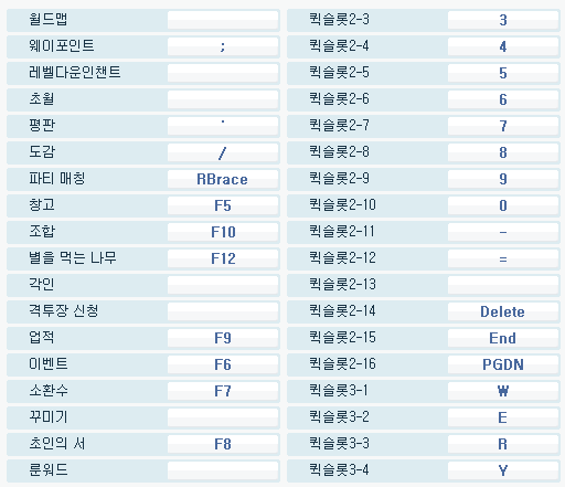 진행의 편리함을 위해 제가 사용하고 있는 퀵슬롯 세팅을 올려드리겠습니다.
