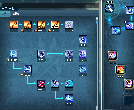 라테일의 메인 직업 다크체이서의 2차 직업, 클로저의 스킬트리입니다.