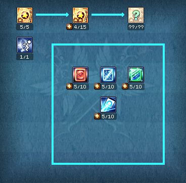 라테일의 카드 계열 직업의 기본 1차 직업, 카드마스터의 스킬트리입니다
