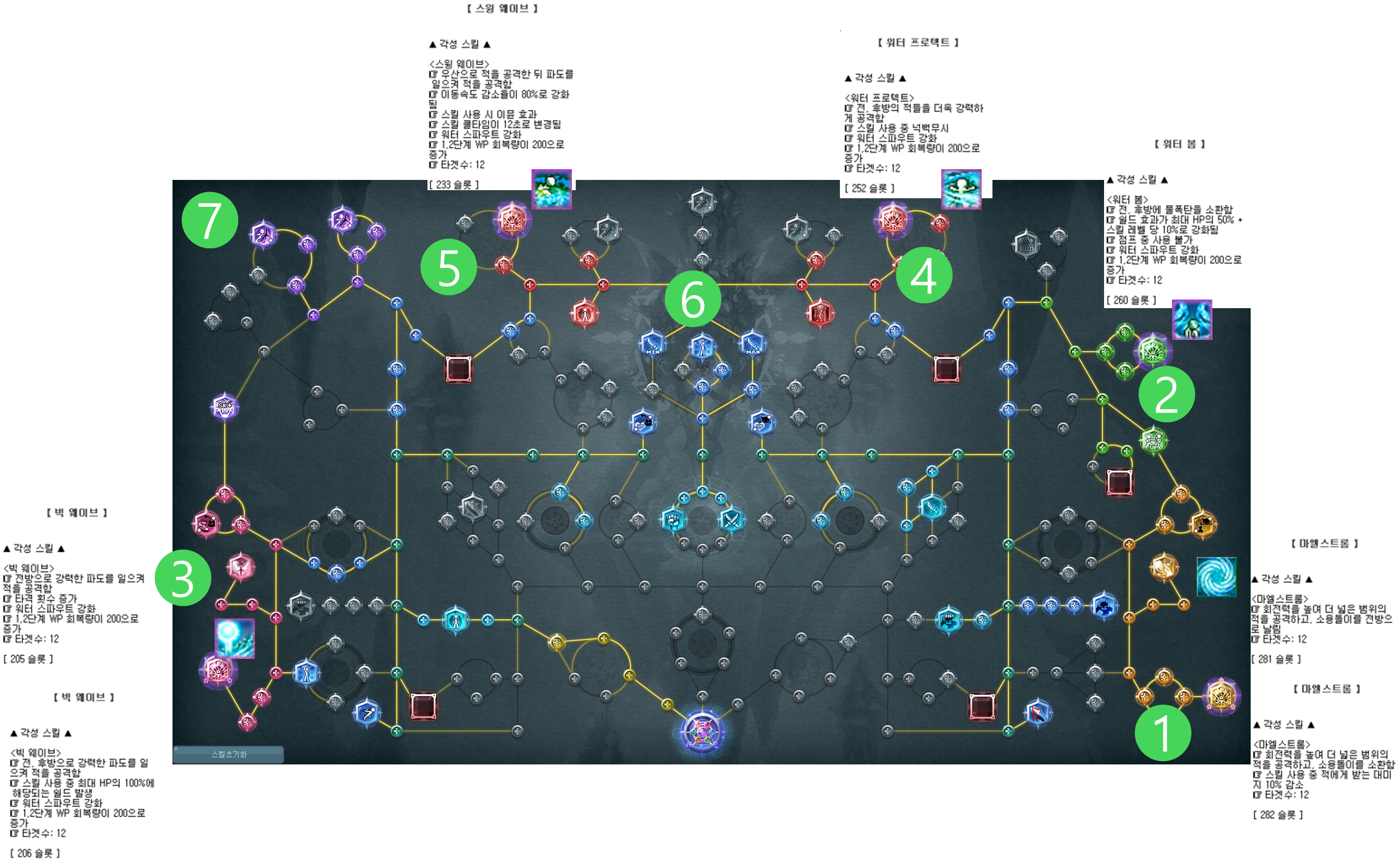 초록색 원에 적힌 숫자는 포인트를 투자해야 할 순서를 말합니다.