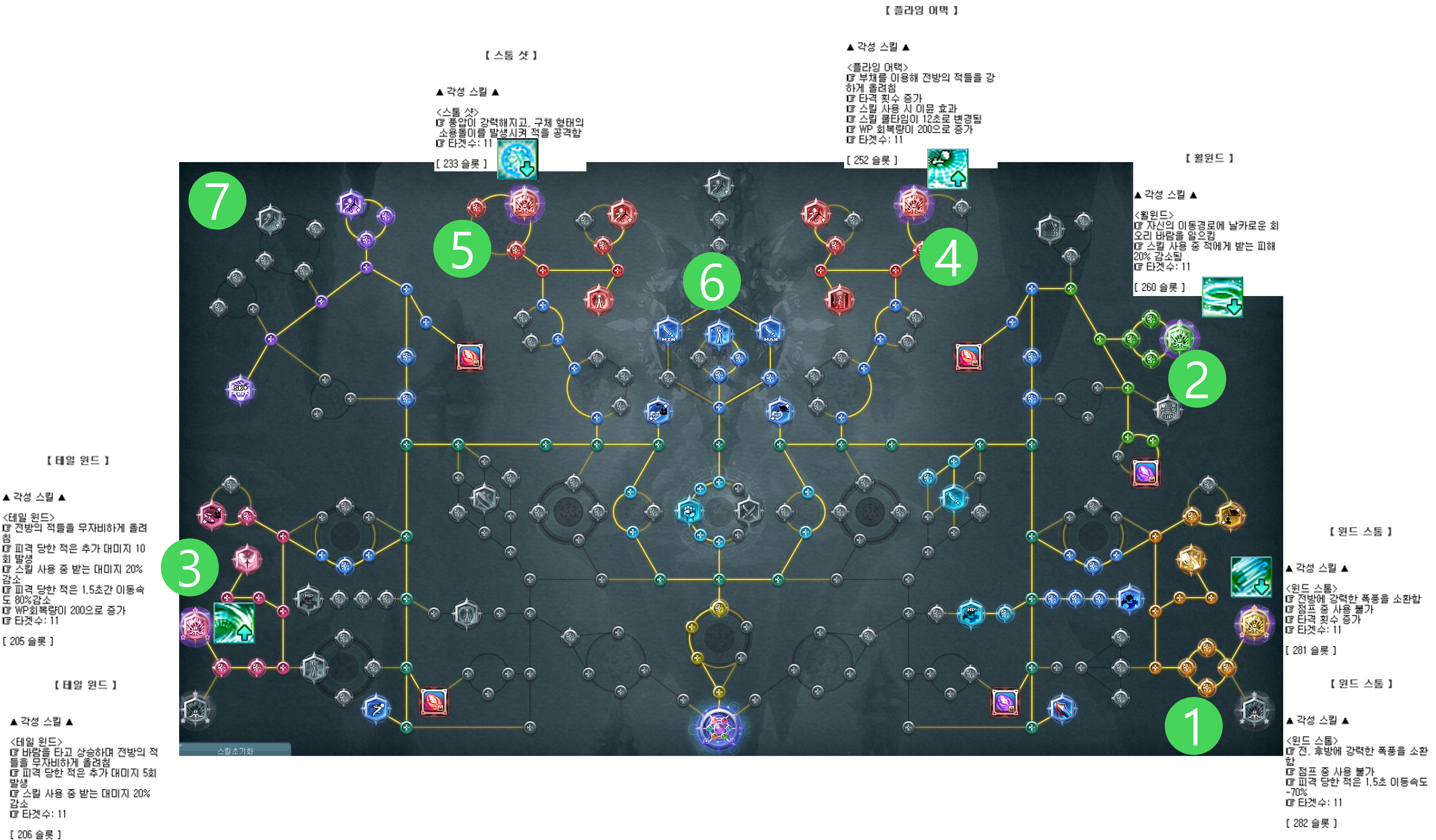 초록색 원에 적힌 숫자는 포인트를 투자해야 할 순서를 말합니다.