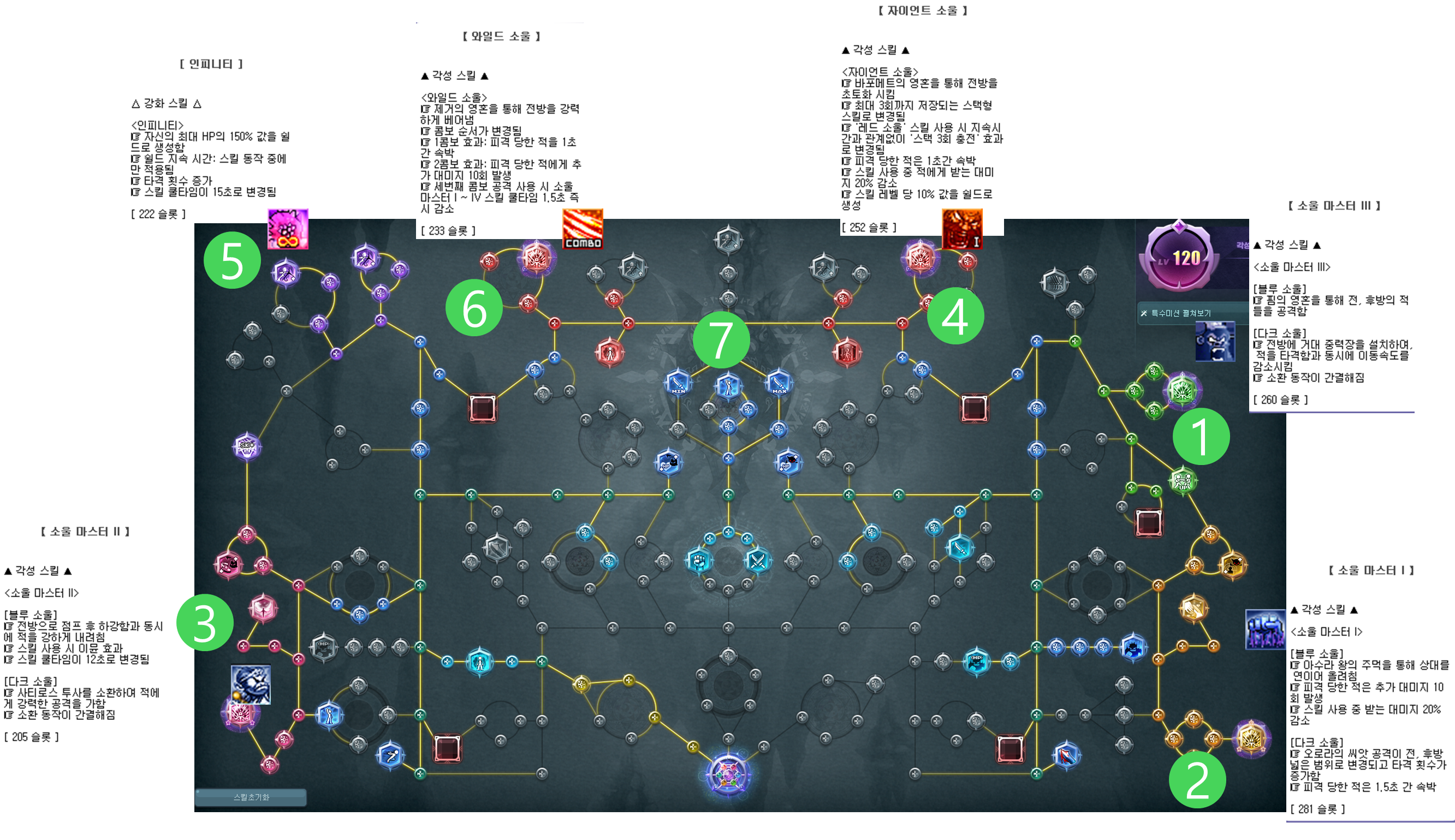 라테일의 메인 마법 직업, 소울리스 원의 스킬트리와 각성트리입니다.