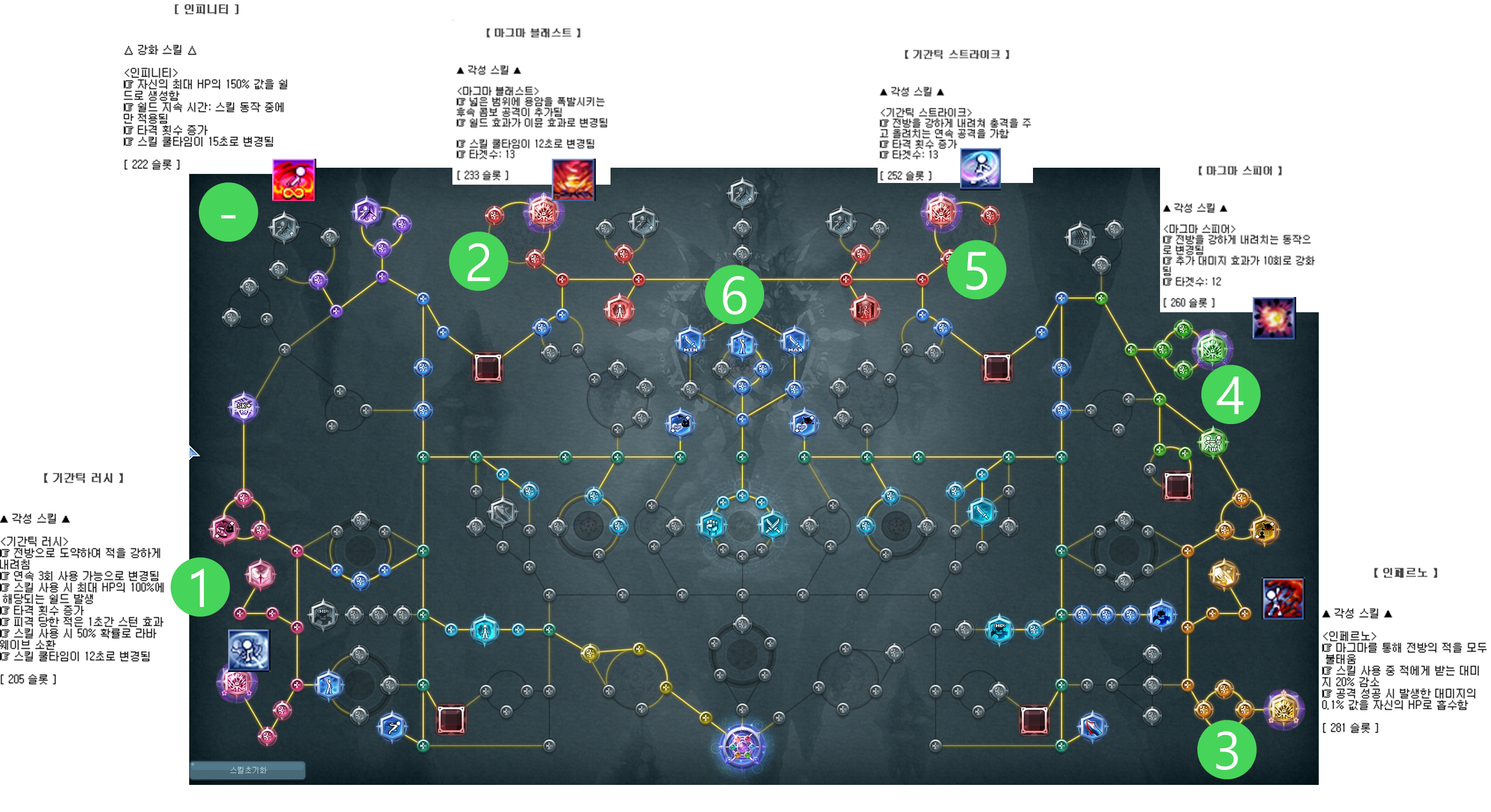 초록색 원에 적힌 숫자는 포인트를 투자해야 할 순서를 말합니다.