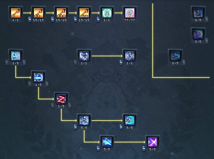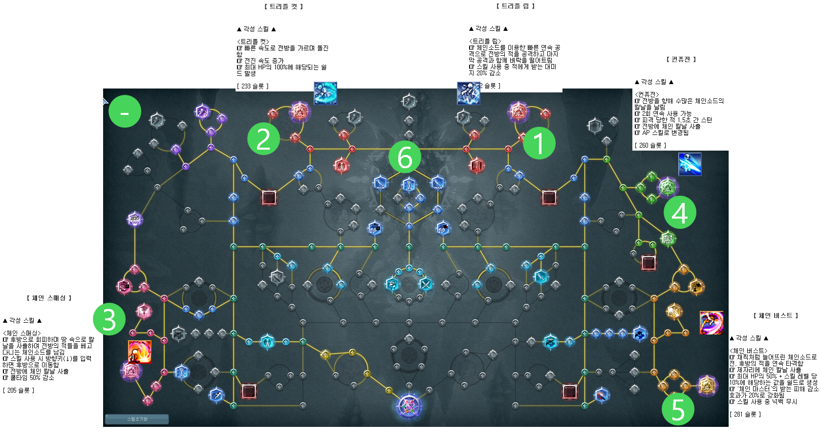 각성 트리를 모두 찍기 전 진행과정의 포인트 투자와 관련한 정보는 여기를 참고해주세요.