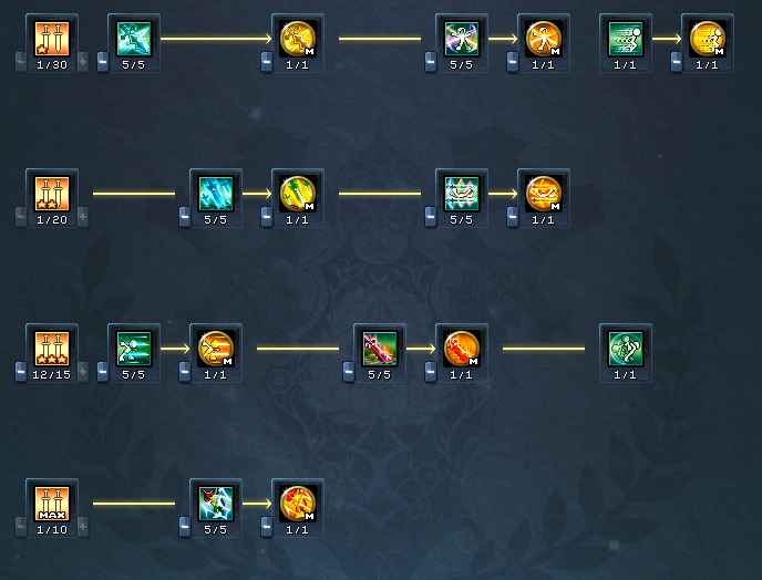 각성 트리를 모두 찍기 전 진행과정의 포인트 투자와 관련한 정보는 여기를 참고해주세요.