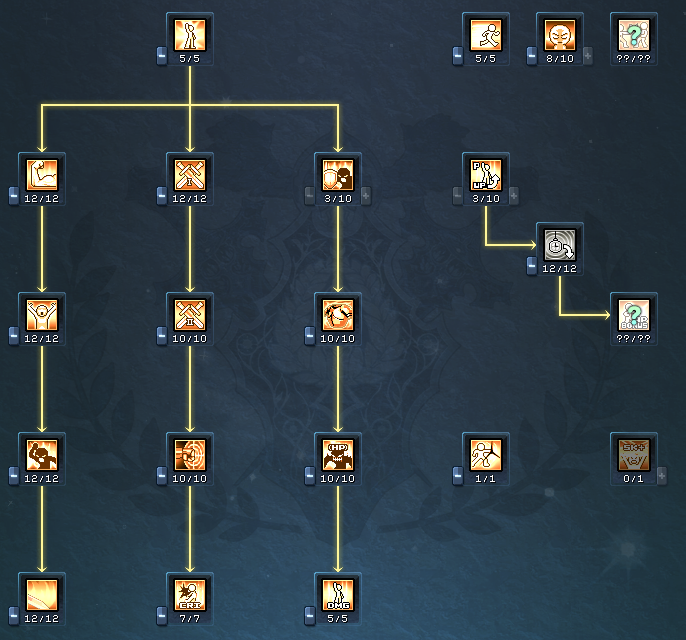 각성 트리를 모두 찍기 전 진행과정의 포인트 투자와 관련한 정보는 여기를 참고해주세요.