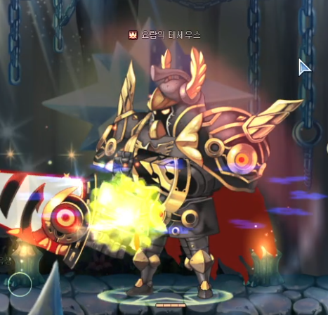 테세우스는 반사 패턴을 가지고 있습니다. 바닥에 칼을 내리꽃고 몸이 보호막으로 빛납니다.