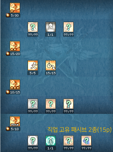 | 직업 | 고유 패시브 슬롯 1(좌측) | 고유 패시브 슬롯 2(우측) |