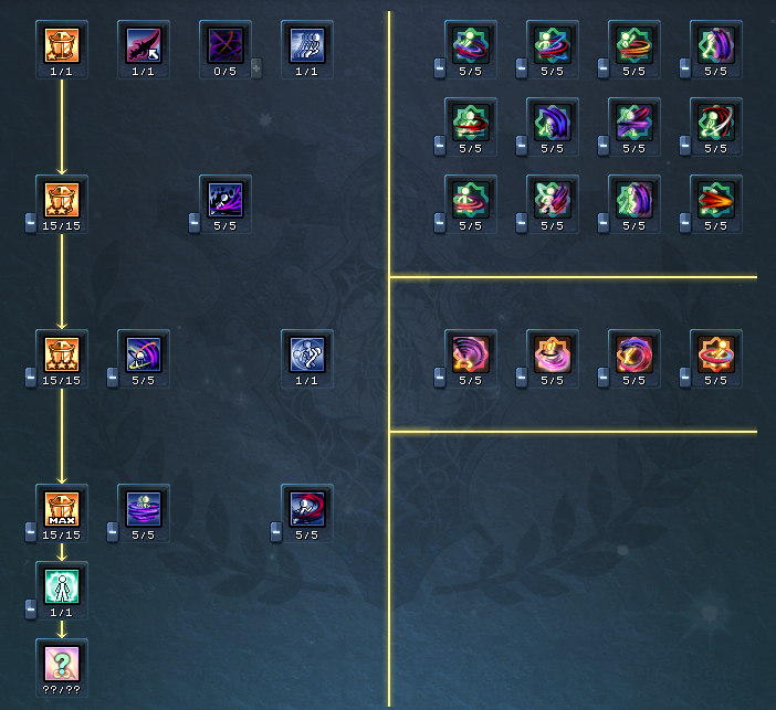 각성 트리를 모두 찍기 전 진행과정의 포인트 투자와 관련한 정보는 여기를 참고해주세요.