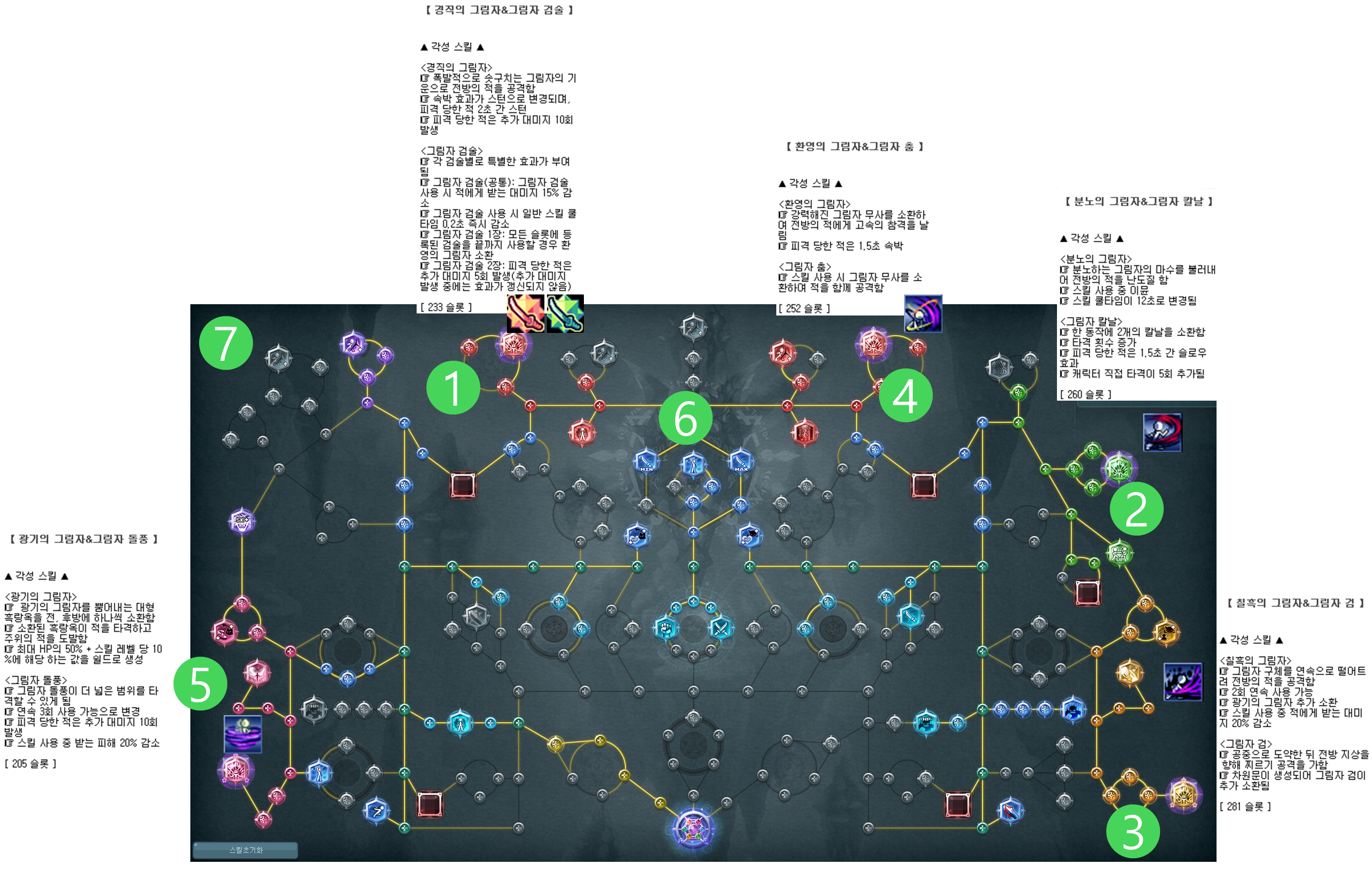 라테일의 메인 물리 직업, 흑영도의 스킬트리와 각성트리입니다.